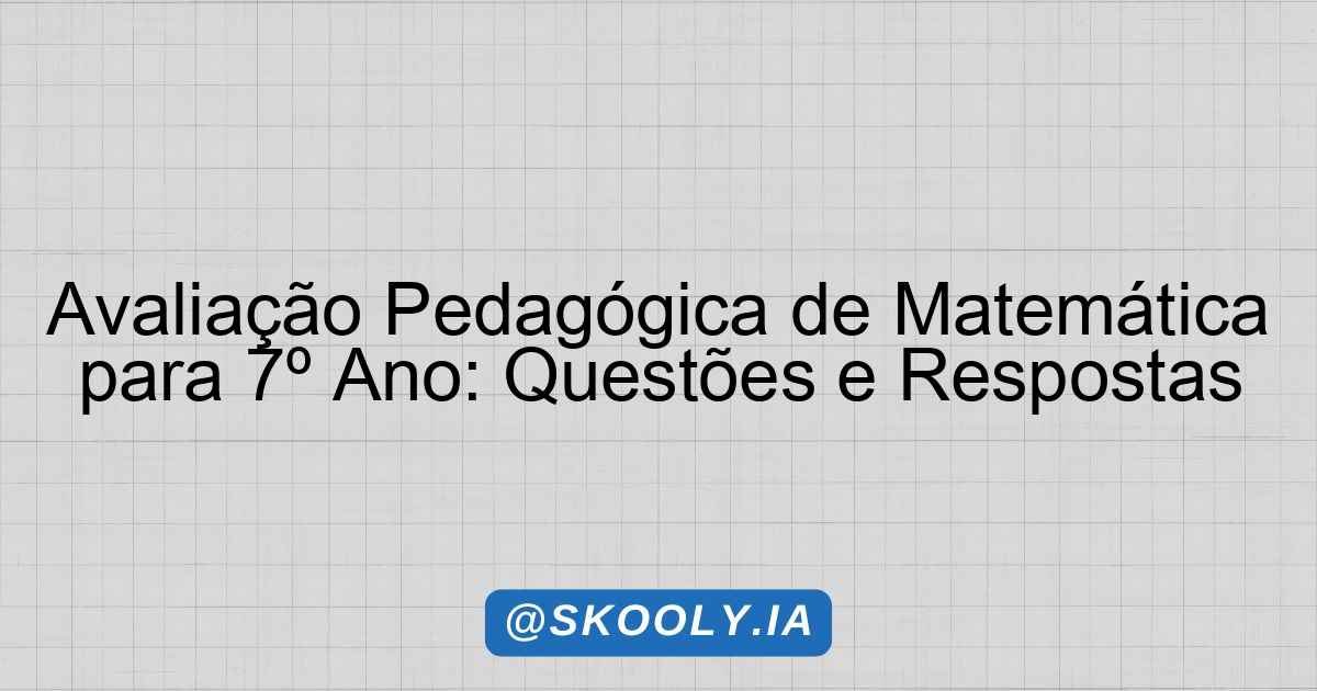 Avaliação Pedagógica de Matemática para 7º Ano: Questões e Respostas