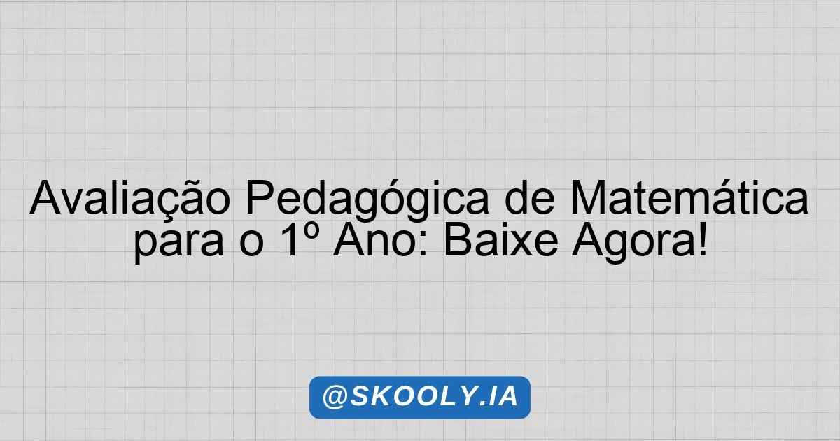 Avaliação Pedagógica de Matemática para o 1º Ano: Baixe Agora!