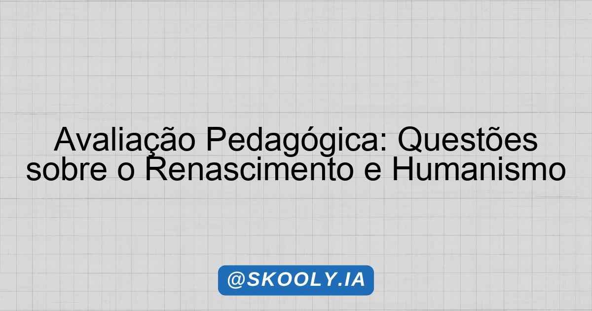 Avaliação Pedagógica: Questões sobre o Renascimento e Humanismo