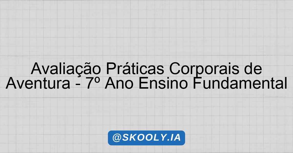 Avaliação Práticas Corporais de Aventura – 7º Ano Ensino Fundamental