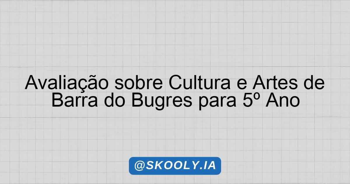 Esta avaliação tem como objetivo conhecer a cultura e o artístico da cidade em que vivemos, Barra do Bugres. As questões a seguir foram elaboradas com base no texto fornecido e têm um nível de dificuldade fácil, apropriado para alunos do 5º ano do Ensino Fundamental I.