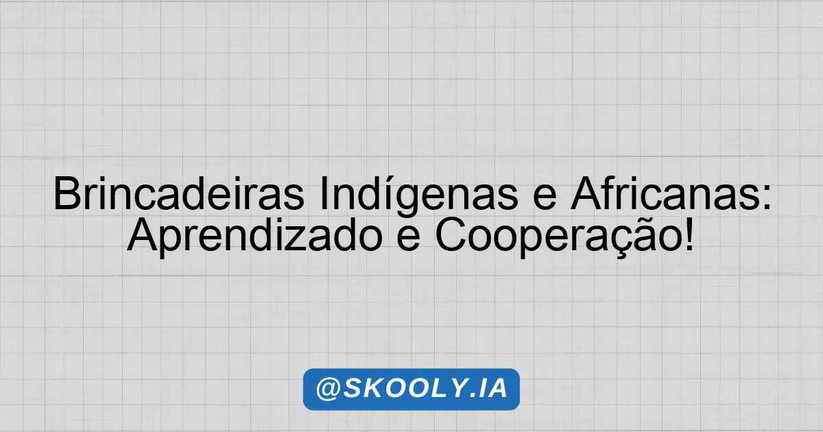 Promover a vivência de brincadeiras e jogos de origem indígena e africana, através de atividades lúdicas, favorecendo a integração e o respeito às culturas, além de desenvolver habilidades motoras e sociais.