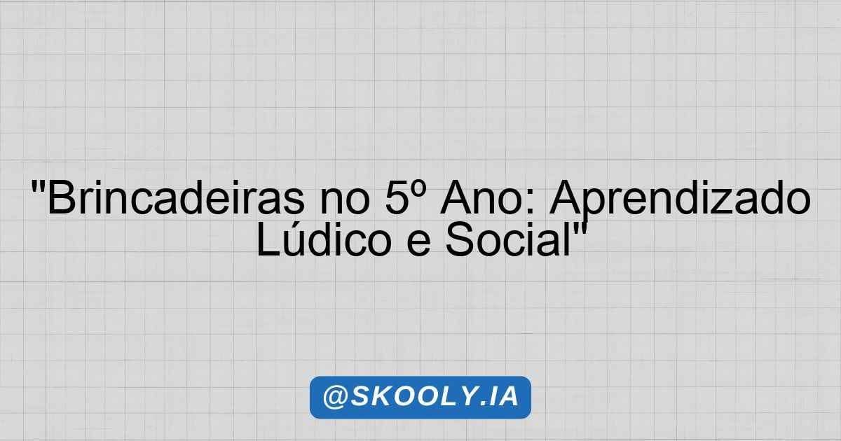 Aula de brincadeiras é uma oportunidade rica de aprendizado e interação social, especialmente para alunos do 5º ano do Ensino Fundamental. Com uma duração de 50 minutos, a aula permitirá que as crianças desenvolvam habilidades essenciais enquanto se divertem. Ao abordar brincadeiras, os alunos não só explorarão o aspecto lúdico, mas também aprenderão sobre as dinâmicas sociais e emocionais que essas atividades proporcionam.