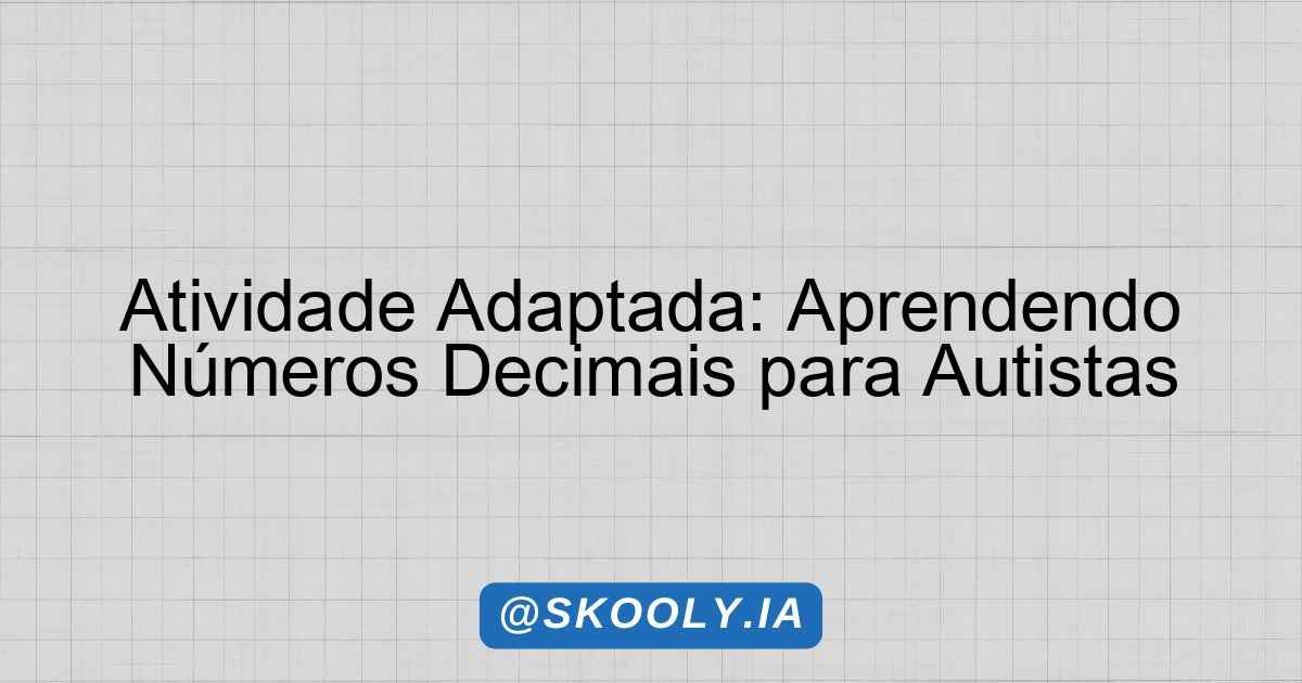 Atividade Adaptada – Sistema de numeração decimal 📚 Disciplina: Matemática 🎓 Série/Ano: 6º ano EF ♿ Necessidades Especiais: Espectro Autista 📊 Nível: Intermediário ⏰ Tempo Estimado: 2 horas 📅 Data de Criação: 08/04/2026 Identificação Título: Explorando o Sistema de Numeração Decimal Série: 6º ano EF Disciplina: Matemática Necessidades: Espectro Autista Objetivos de Aprendizagem Identificar e … Ler mais