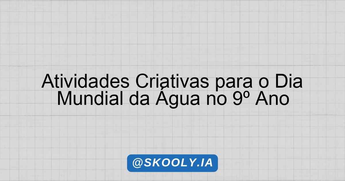 Atividades para o Dia Mundial da Água – 1º ano EF – Língua Inglesa Atividade 1: “Water Savings Poster” (Pôster de Economia de Água) Objetivo: Criar um pôster em inglês sobre como economizar água. Passo a passo: Apresente palavras e frases em inglês relacionadas à economia de água (ex: “Turn off the tap”, “Take shorter … Ler mais
