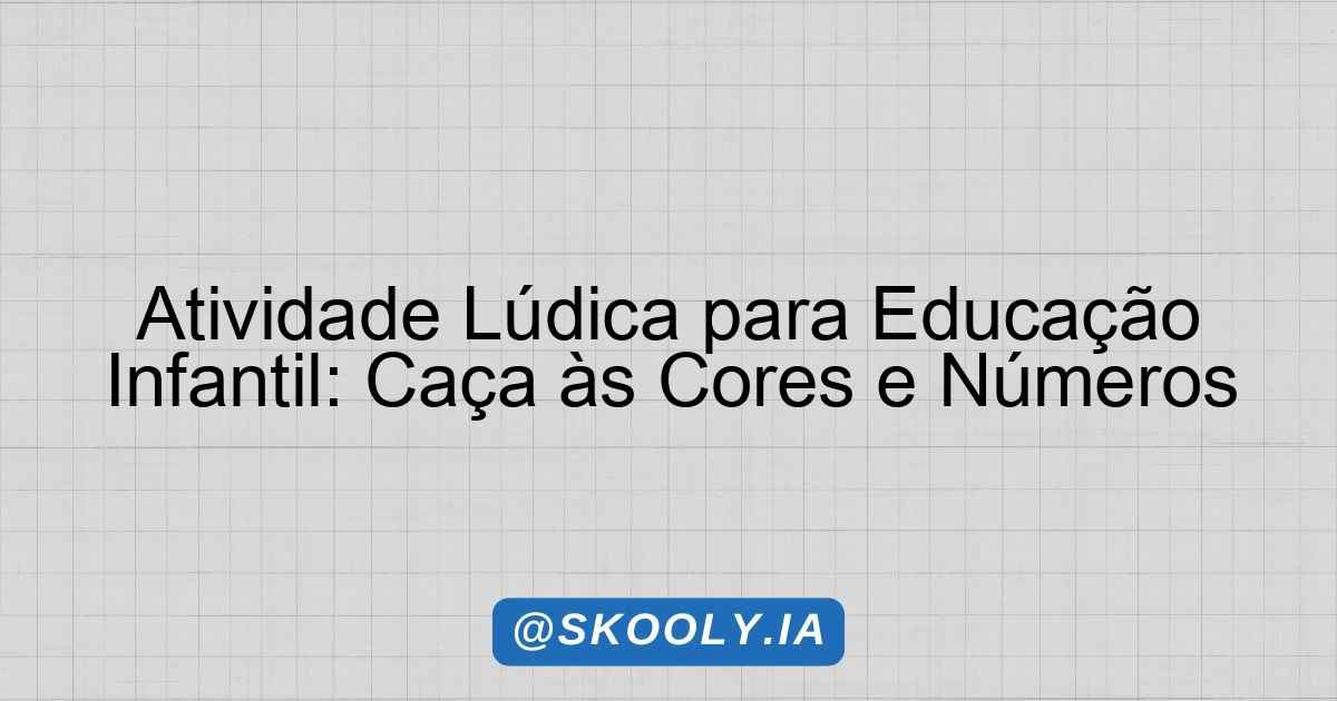 SKOOLY – ATIVIDADES LÚDICAS BNCC 🎲 Atividades: UMA ATIVIDADE PARA INICIO DE ANO LETIVO 🎓 Etapa: Educação Infantil📅 Série: Crianças pequenas (4 anos a 5 anos e 11 meses)📚 Disciplina: Espaços tempos quantidades relações e transformações🔢 Atividades: 3🎮 Tipo: Mista⏱️ Duração: 45 minutos📅 Gerado: 29/03/2026 1. “Caça às Cores e Números” Habilidade(s) BNCC (EI03ET07): Relacionar … Ler mais