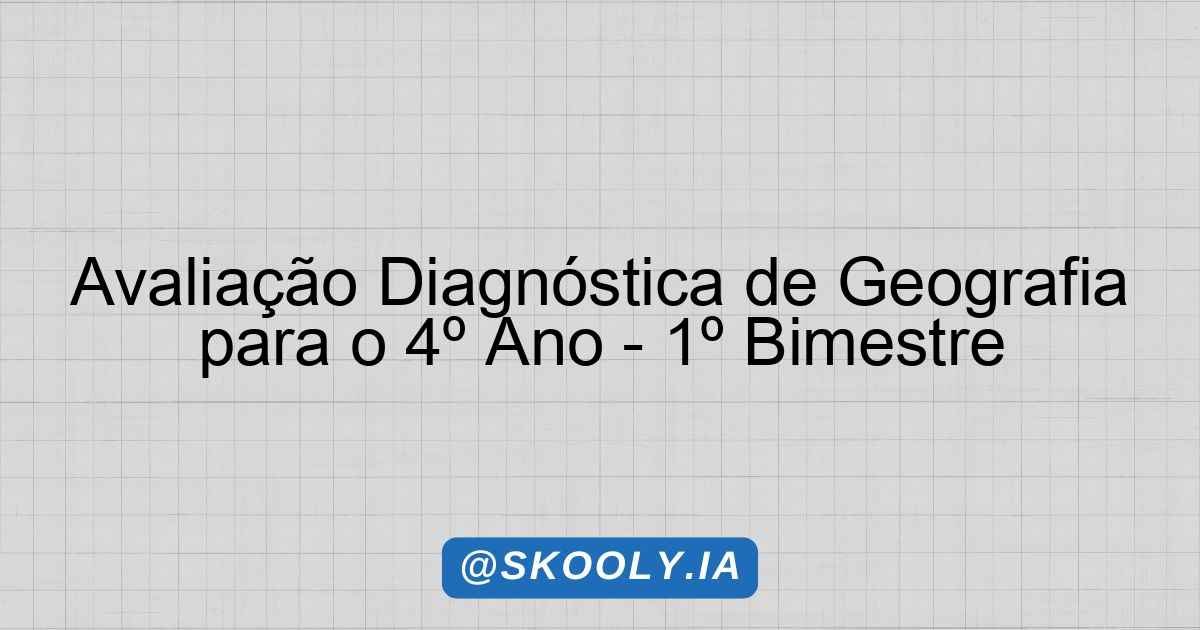 Avaliação Diagnóstica de Matemática para 4º Ano – 1º Bimestre