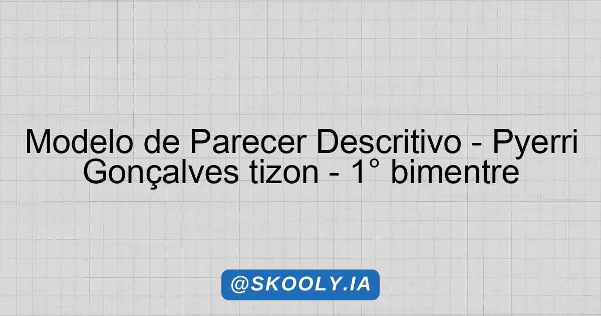 Parecer Descritivo – 1º TRIMESTRE 2026 Aluno(a): DAVI LUIZ FRANCO Nível de Ensino: Fundamental anos iniciais Data: 19/04/2026 Parecer Descritivo do Aluno Davi Luiz Franco O presente parecer tem como objetivo relatar o desenvolvimento do aluno Davi Luiz Franco no 1º trimestre de 2026, com foco nas disciplinas de Ciências, Arte e Educação Física. Davi … Ler mais