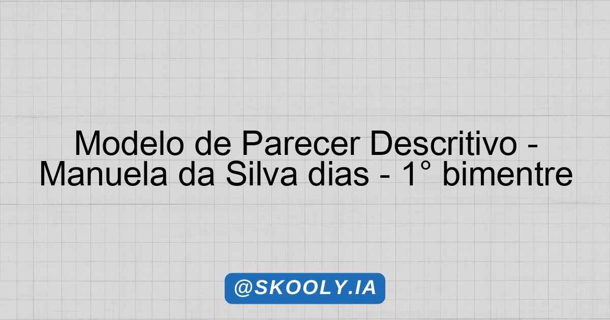 Parecer Descritivo – 1° bimentre Aluno(a): Maria Isadora Neves Avelar Nível de Ensino: Fundamental anos iniciais Data: 21/04/2026 Parecer Descritivo – 1º Bimentre É com grande satisfação que apresento o parecer descritivo da aluna Maria Isadora Neves Avelar, referente ao 1º bimentre do 1º ano do Ensino Fundamental. Neste período, Maria Isadora demonstrou um progresso … Ler mais
