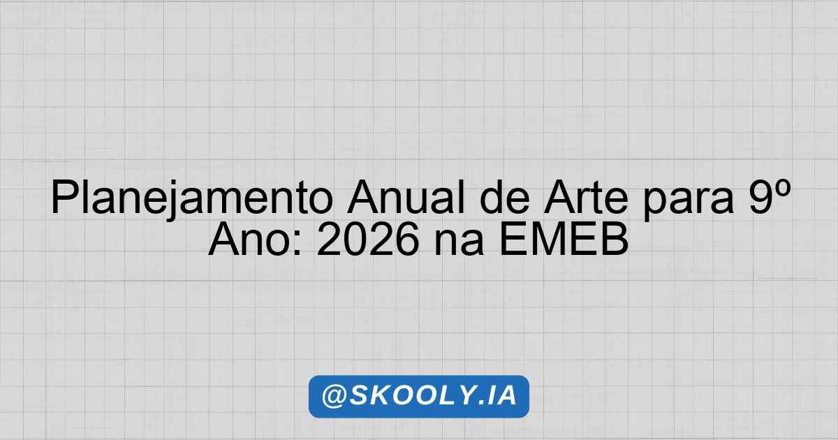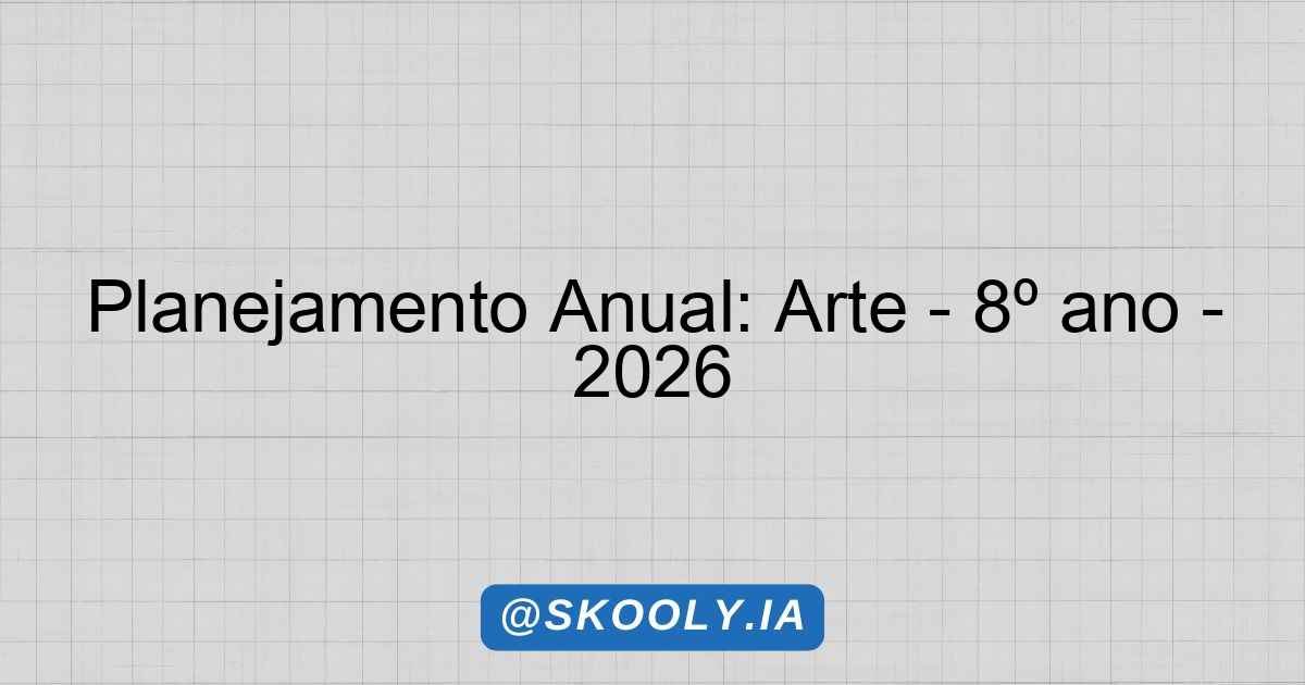 Planejamento Anual – 2026 📚 Componente Curricular: Arte 🎓 Ano/Série: 8º ano 🏫 Escola: Escola Estadual Senador João Bosco Ramos de Lima 👨🏫 Professor(a): Professora: Marcela de Souza Bezerra Marques 📅 Data de Elaboração: 21/02/2026 Planejamento Anual – Arte 8º Ano Planejamento Anual de Arte – 8º Ano 1️⃣ IDENTIFICAÇÃO GERAL Escola Disciplina Série Professor … Ler mais