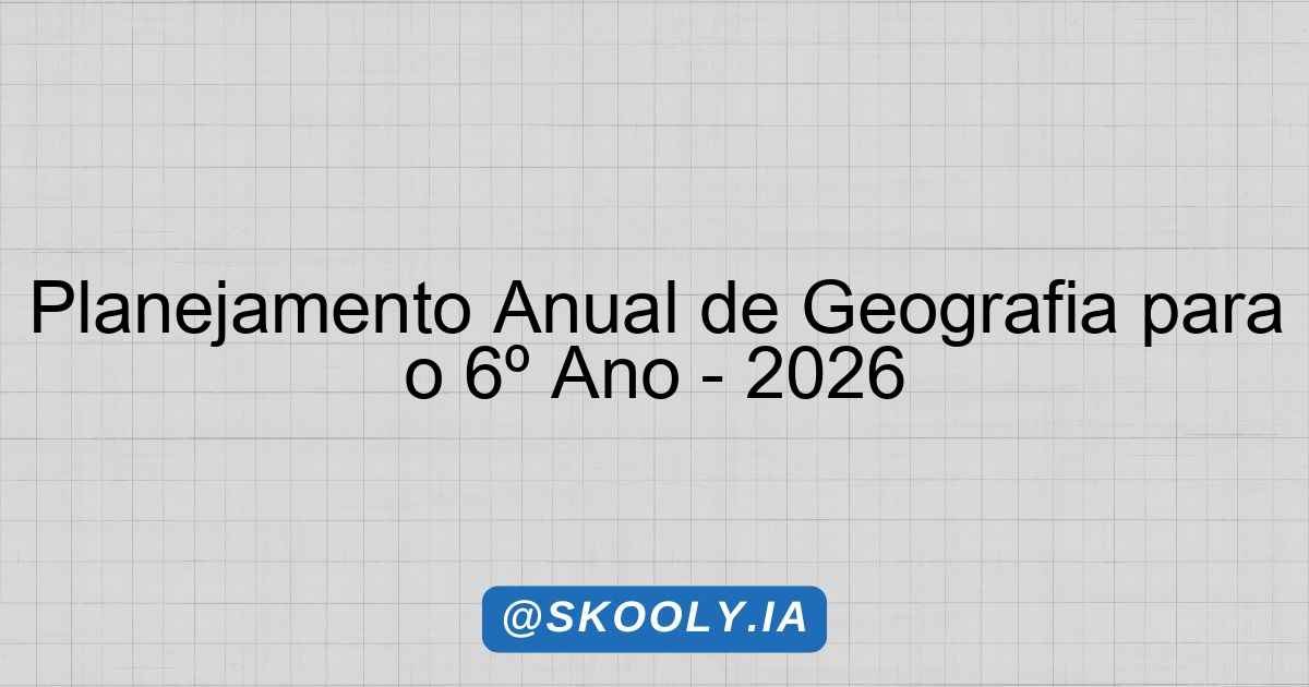 Planejamento Anual – 2026 📚 Componente Curricular: Geografia 🎓 Ano/Série: 6º ano 🏫 Escola: E.E.E.F.M.MARIA AUGUSTA LUCENA BRITO 👨🏫 Professor(a): HERCULANO CANDIDO DE SOUSA NETO 📅 Data de Elaboração: 19/02/2026 Planejamento Anual – Geografia 1️⃣ IDENTIFICAÇÃO GERAL Escola Disciplina Série Professor Ano Carga Horária E.E.E.F.M.MARIA AUGUSTA LUCENA BRITO Geografia 6º ano HERCULANO CANDIDO DE SOUSA … Ler mais