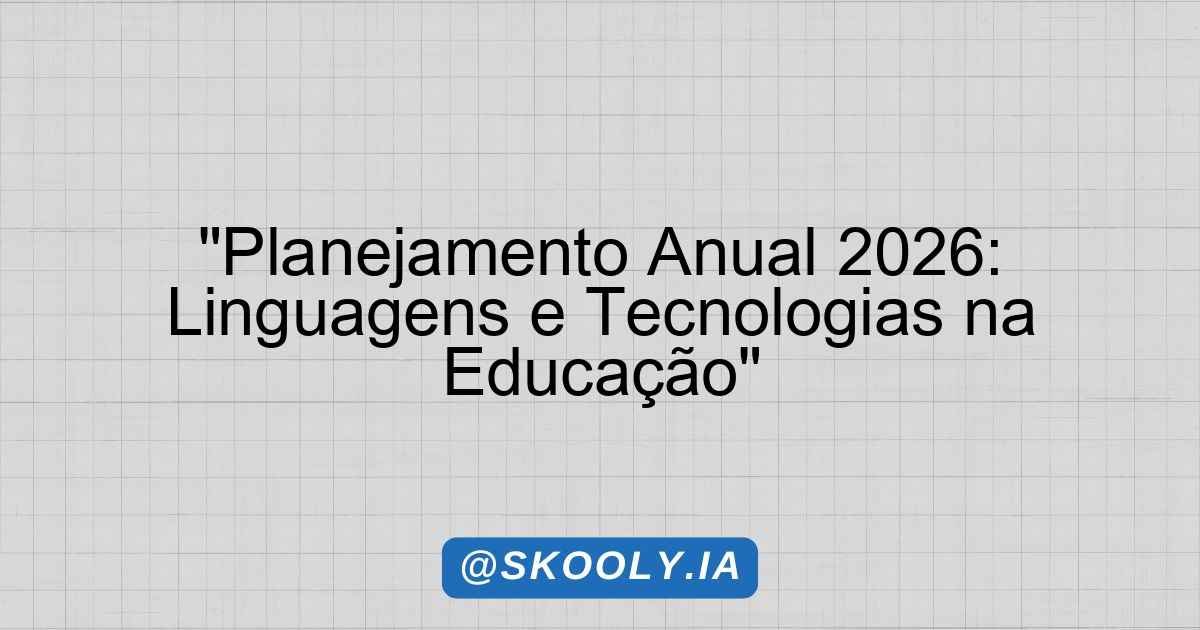 Planejamento Anual – 2026 📚 Componente Curricular: Língua Portuguesa 🎓 Ano/Série: 8º ano 🏫 Escola: ESCOLA ESTADUAL JOSÉ CARNEIRO DA CUNHA 👨🏫 Professor(a): CARINE DOS SANTOS CORREA LOPES 📅 Data de Elaboração: 07/02/2026 Planejamento Anual – Língua Portuguesa 8º Ano Planejamento Anual – Língua Portuguesa 8º Ano 1️⃣ IDENTIFICAÇÃO GERAL Escola ESCOLA ESTADUAL JOSÉ CARNEIRO … Ler mais