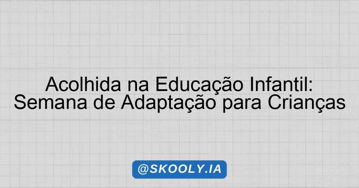 Acolhida na Educação Infantil: Semana de Adaptação para Crianças