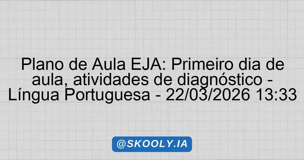 SKOOLY – PLANO DE AULA EJA 📖 Plano de Aula: origem da humanidade, deslocamentos e processos de sedentarização 🎓 Etapa: EJA – Ensino Fundamental II (6º ao 9º ano)📚 Disciplina: História🔢 Aulas: 1 × 45 minutos📊 Nível: Básico🧠 Método: Aula expositiva dialogada📅 Gerado: 23/03/2026 1. Identificação do Plano Etapa: EJA – Ensino Fundamental II (6º … Ler mais