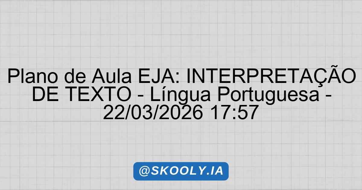 Plano de Aula EJA: INTERPRETAÇÃO DE TEXTO – Língua Portuguesa – 22/03/2026 17:57