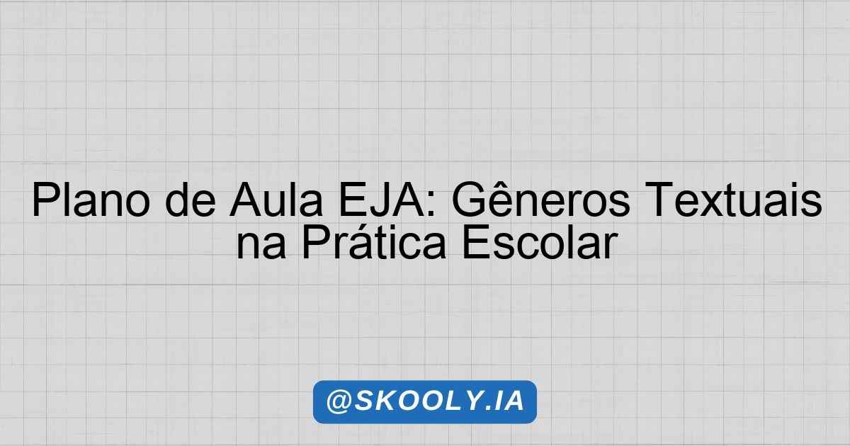 SKOOLY – PLANO DE AULA EJA 📖 Plano de Aula: Gêneros textuais: Relatos pessoais, Posts em redes sociais, Cartas, Diários, Memes, Diálogos, Entrevistas, Questionários. 🎓 Etapa: EJA – Ensino Médio📚 Disciplina: Linguagens e suas Tecnologias🔢 Aulas: 8 × 45 minutos📊 Nível: Básico🧠 Método: Mista📅 Gerado: 19/03/2026 1. Identificação do Plano Etapa: EJA – Ensino Médio … Ler mais