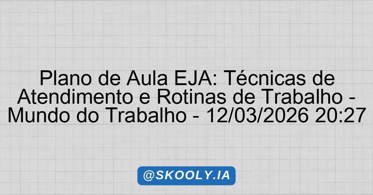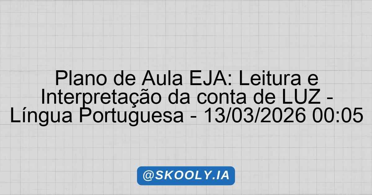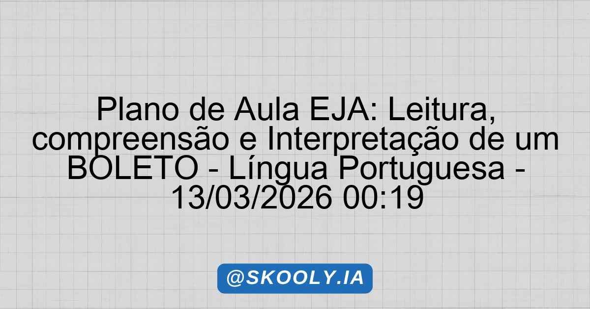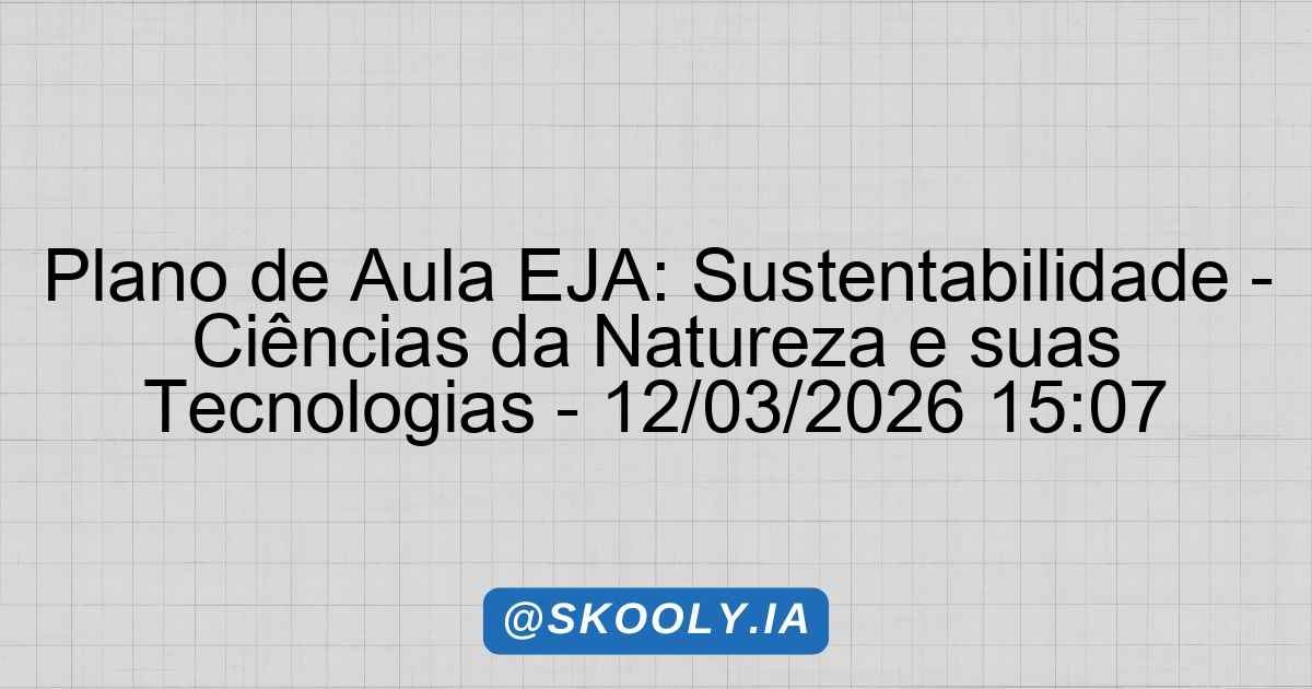SKOOLY – PLANO DE AULA EJA 📖 Plano de Aula: Criação de conto desenvolver a capacidade de criar conto 🎓 Etapa: EJA – Ensino Fundamental II (6º ao 9º ano)📚 Disciplina: Língua Portuguesa🔢 Aulas: 2 × 2 horas📊 Nível: Básico🧠 Método: Gamificação📅 Gerado: 16/03/2026 1. Identificação Etapa: EJA – Ensino Fundamental II Disciplina: Língua Portuguesa … Ler mais
