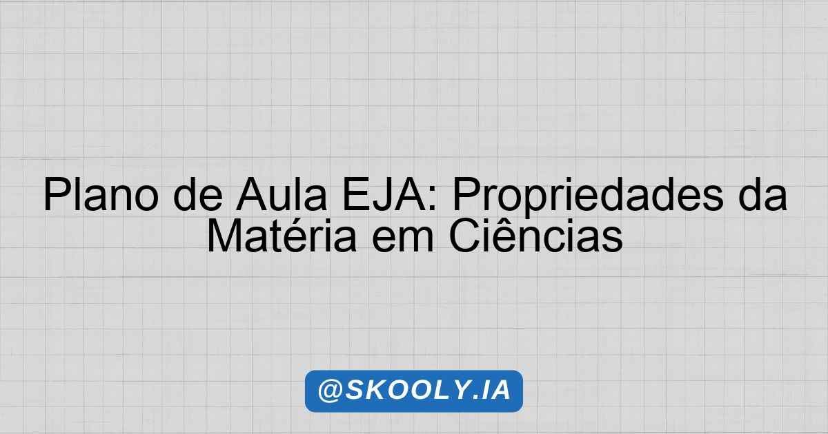 Plano de Aula EJA: Propriedades da Matéria em Ciências
