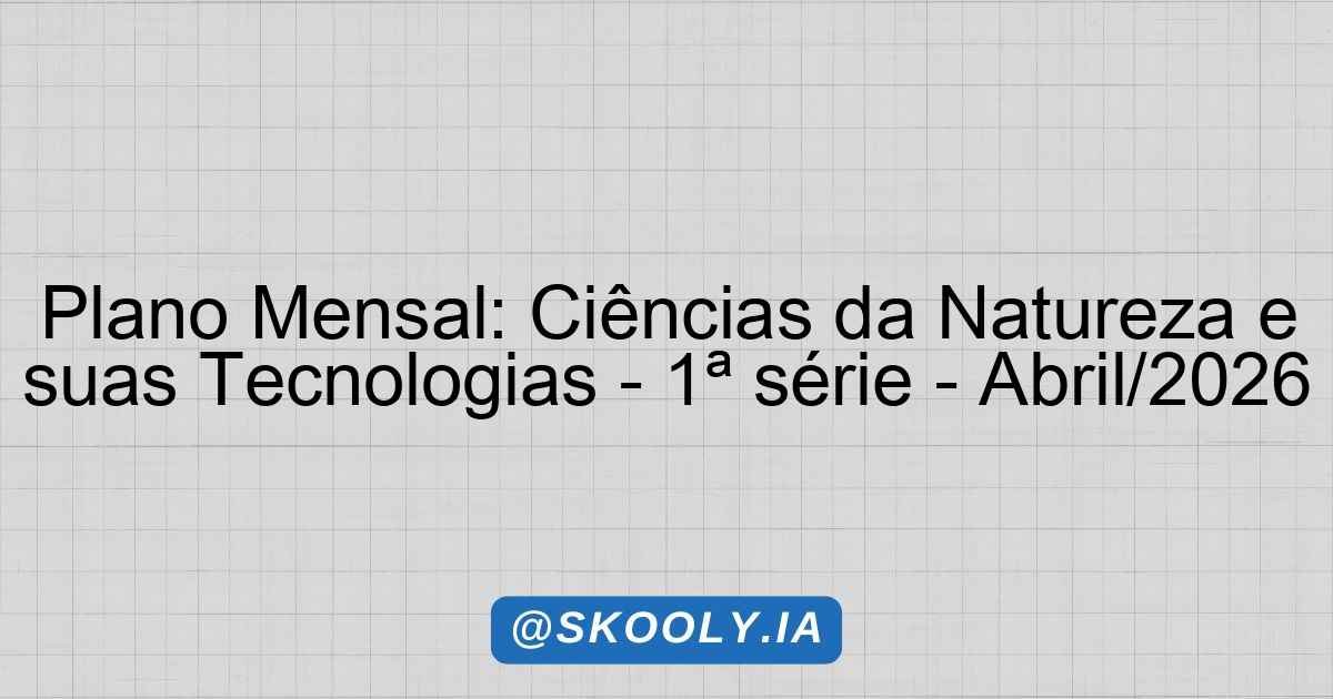 SKOOLY – PLANO MENSAL BNCC 📅 Plano Mensal: acoes antropicas; principais impactos ambientais; historico dos impactos ambientais 📅 Mês: Abril/2026🎓 Etapa: Ensino Médio📚 Série: 1ª série📖 Disciplina: Ciências da Natureza e suas Tecnologias⏰ Carga: 2 aulas📋 Formato: Detalhado📆 Gerado: 18/04/2026 1. Identificação Disciplina: Ciências da Natureza e suas Tecnologias Série: 1ª série do Ensino Médio … Ler mais