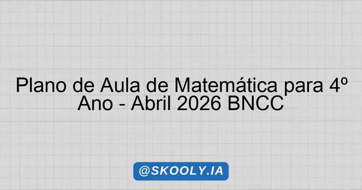SKOOLY – PLANO MENSAL BNCC 📅 Plano Mensal: NÚMEROS E OPERAÇÕES 📅 Mês: Abril/2026🎓 Etapa: Ensino Fundamental 1📚 Série: 4º ano📖 Disciplina: Matemática👥 Turma: B⏰ Carga: 5 aulas📋 Formato: Detalhado📆 Gerado: 13/04/2026 1. Identificação Disciplina: Matemática Série: 4º ano Turma: B Mês/Ano: Abril de 2026 Carga Horária: 5 aulas semanais Tema: Números e Operações 2. … Ler mais