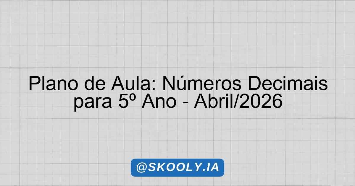 SKOOLY – PLANO MENSAL BNCC 📅 Plano Mensal: NÚMEROS DECIMAIS 📅 Mês: Abril/2026🎓 Etapa: Ensino Fundamental 1📚 Série: 5º ano📖 Disciplina: Matemática👥 Turma: GRAMÁTICA⏰ Carga: 3 aulas📋 Formato: Semanal📆 Gerado: 13/04/2026 Plano de Aula Mensal – Abril de 2026 Identificação Mês/Ano: Abril de 2026 Etapa: Ensino Fundamental 1 Série/Ano: 5º ano Disciplina: Matemática Turma: GRAMÁTICA … Ler mais