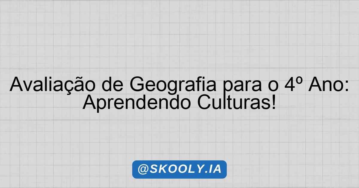 Avaliação de Geografia para o 4º Ano: Aprendendo Culturas!