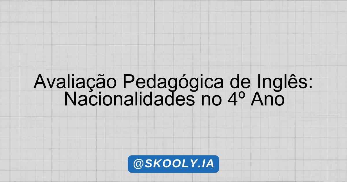 Avaliação Pedagógica de Inglês: Nacionalidades no 4º Ano
