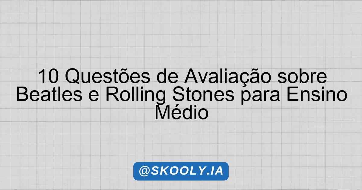 Questões sobre: Era um garoto que como eu amava os Beatles e os Rolling Stones 📚 Área: Linguagens 🎓 Nível: 3ª Série – Ensino Médio 📊 Quantidade: 10 questões 📝 Tipos: Múltipla escolha, Verdadeiro ou Falso, Dissertativa, Completar lacunas, Associação, Análise crítica 📅 Data de Criação: 14/04/2026 Questões de Avaliação – Era um garoto que … Ler mais