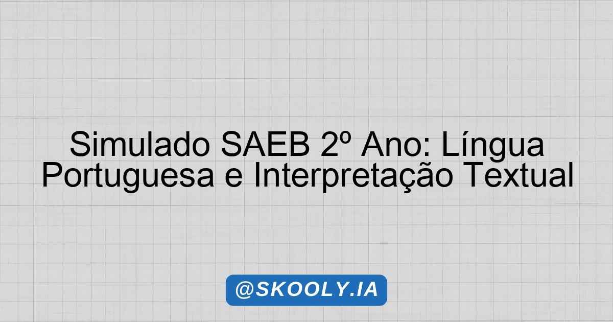 Simulado SAEB – Língua Portuguesa – 9º ano EF 📚 Disciplina: Língua Portuguesa 🎓 Série/Etapa: 9º ano EF 📝 Número de Questões: 10 📋 Referência: Descritores SAEB 🎯 Tema Principal: Interpretação e análise crítica de textos dissertativo argumentativos ⚡ Nível: Avançado 📋 Descritores SAEB: D12, D16, D1, D4, D6, D7, D13, D20 📅 Data de … Ler mais
