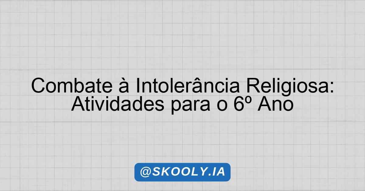Combate à Intolerância Religiosa: Atividades para o 6º Ano