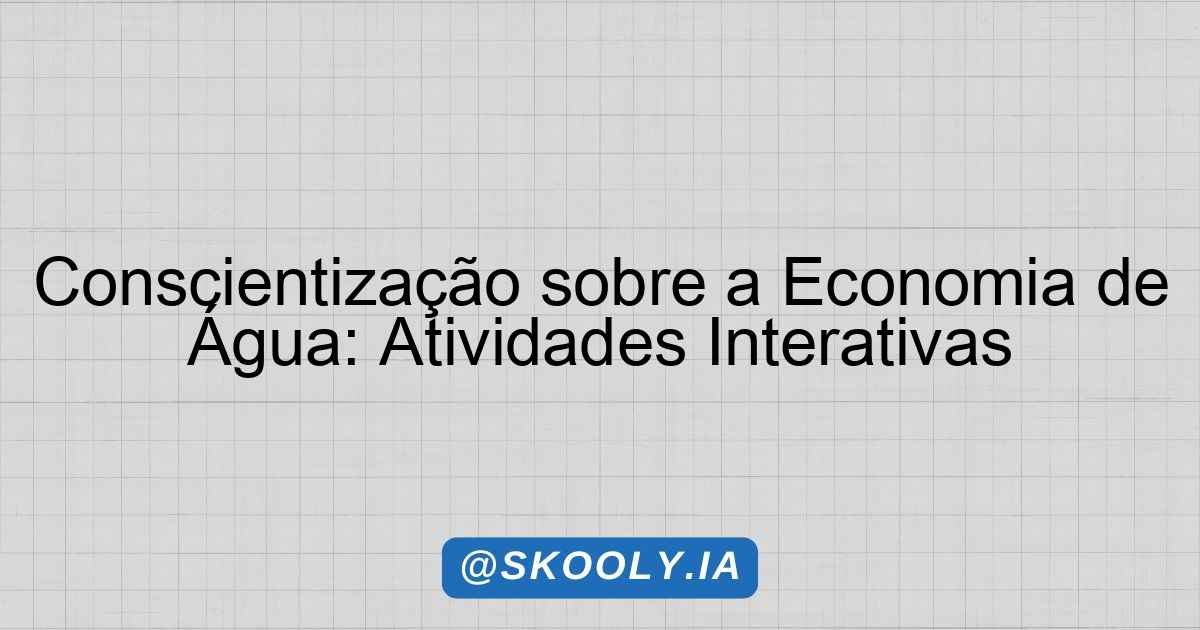 - 25 – 35 minutos: Divida os alunos em grupos. Cada grupo deverá criar um cartaz que represente uma ação que pode ser tomada para economizar água, usando frases curtas e imagens. Os alunos usarão 10 minutos para discutir ideias e 10 minutos para montar o cartaz.