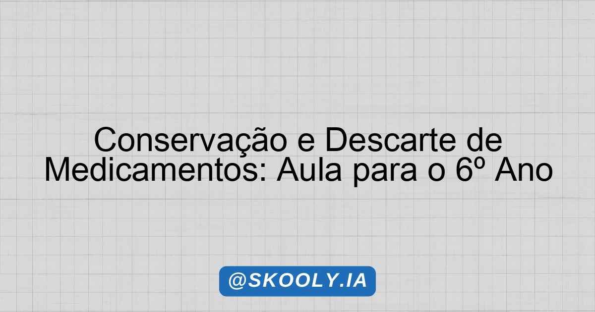 Conservação e Descarte de Medicamentos: Aula para o 6º Ano