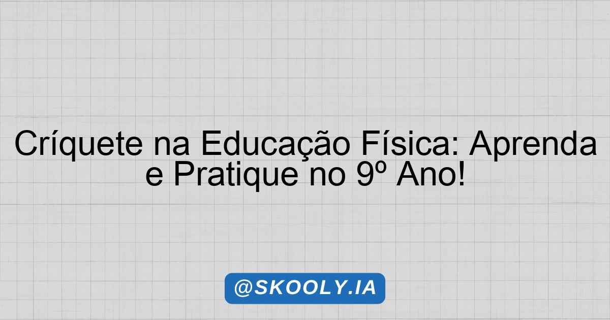 O críquete é um esporte que promove habilidades como trabalho em equipe, disciplina, coordenação motora e práticas de fair play. Além disso, o seu ensino nas aulas de Educação Física pode enriquecer a experiência dos alunos, introduzindo conceitos de cultura, história e características sociais dos países onde é popular.