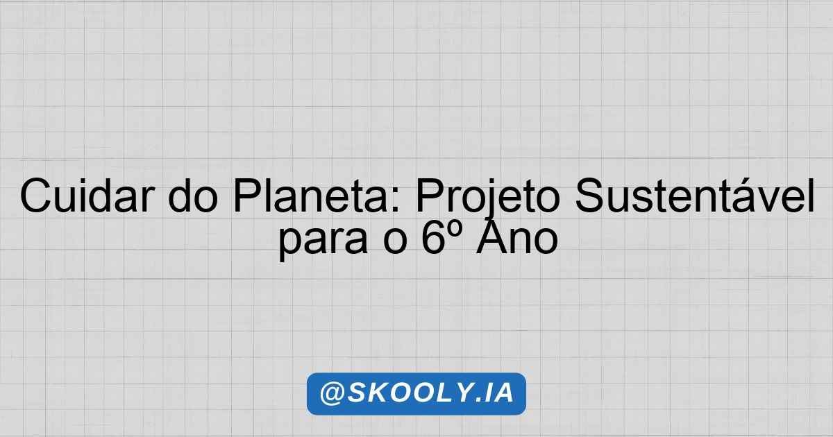 Título do Projeto: “Cuidar do Planeta: Uma Aventura Sustentável”