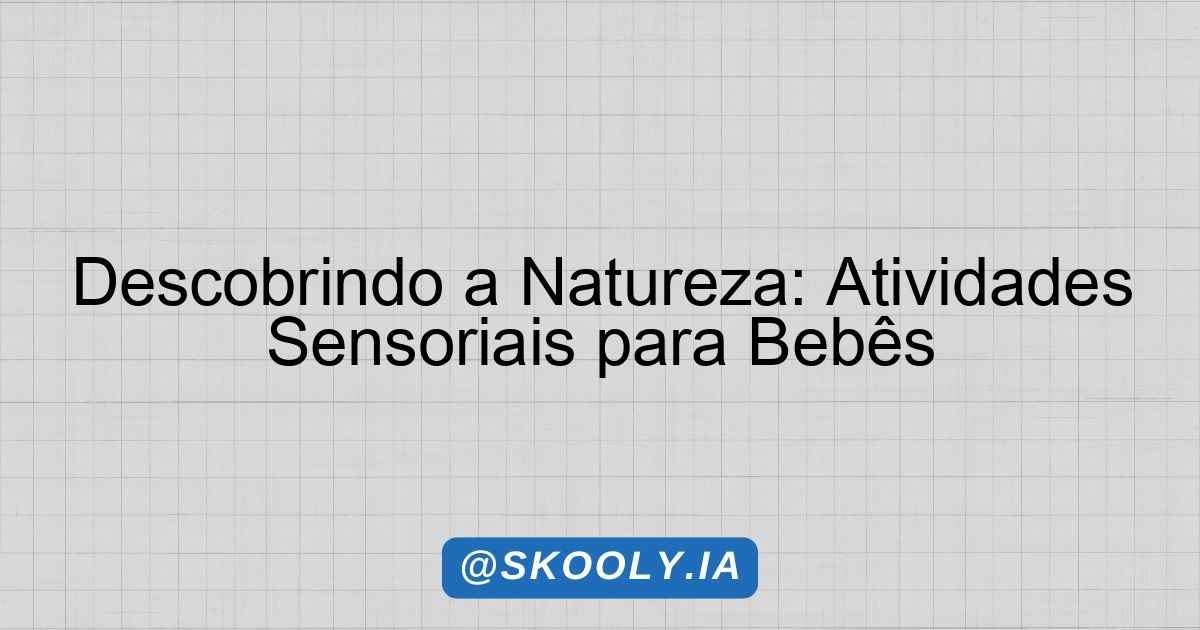 Este plano de aula é voltado para a Educação Infantil e visa proporcionar aos bebês uma experiência rica e prazerosa no contato com a natureza e seus elementos. A proposta é estimular a descoberta sensorial, a interação social e a percepção do mundo ao redor, utilizando diferentes estratégias pedagógicas que favorecem o desenvolvimento integral da criança.