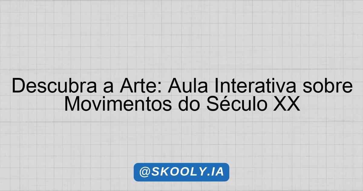 - 20 a 35 minutos: Apresentação dos principais movimentos artísticos do século XX (Surrealismo, Cubismo, Expressionismo, Pop Art, etc.). Use slides ou recursos visuais.