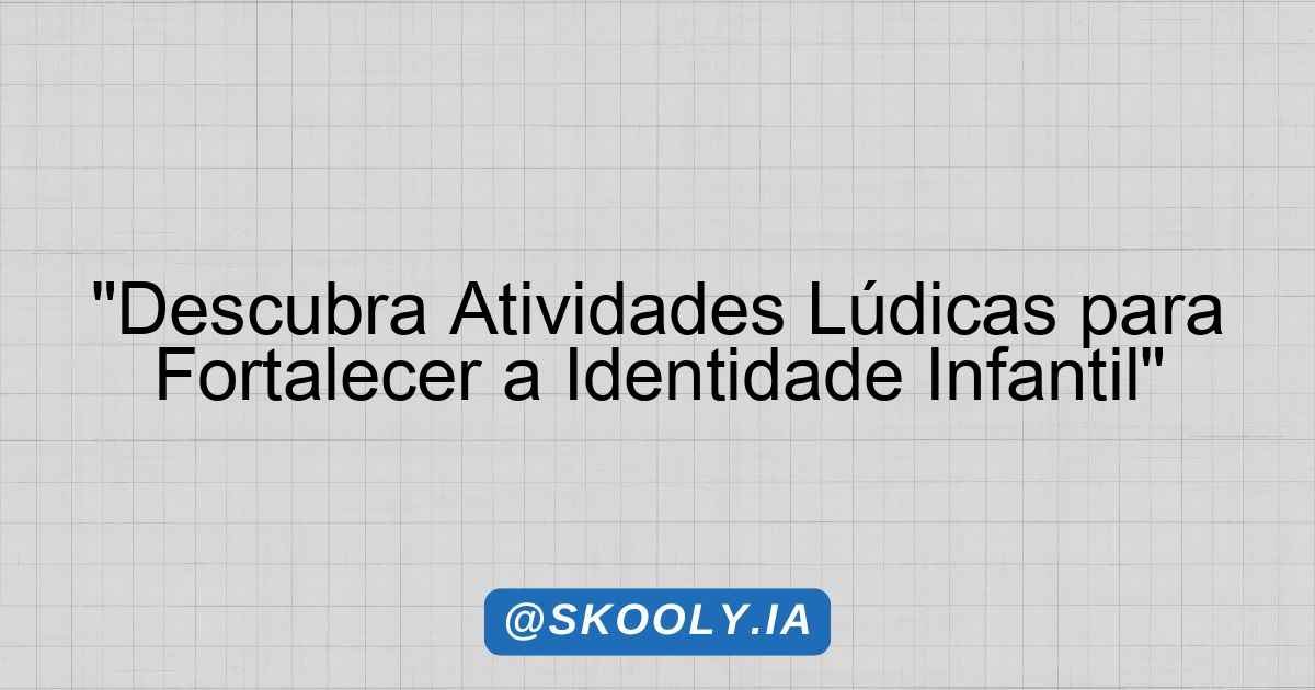 “Descubra Atividades Lúdicas para Fortalecer a Identidade Infantil”
