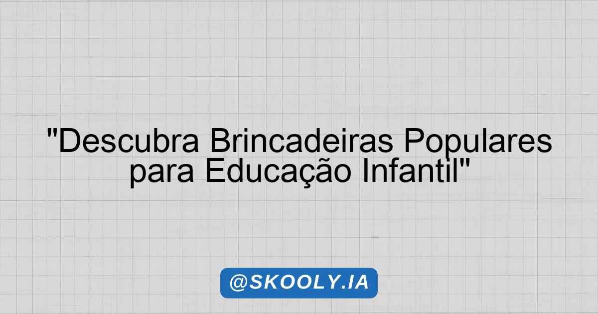 Brincadeiras Populares na Educação Infantil