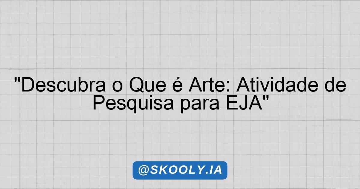 Nesta atividade, os alunos terão a oportunidade de pesquisar e refletir sobre o conceito de arte e sua presença em nosso cotidiano. Compreender o que é arte é fundamental para reconhecermos as múltiplas formas de expressão que nos cercam, fortalecendo nosso olhar crítico e a valorização da diversidade cultural.