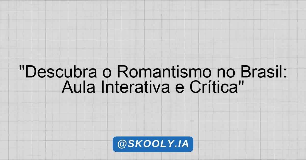 A proposta deste plano de aula sobre Literatura – O Romantismo no Brasil é estimular a apreciação e a análise crítica da literatura no contexto histórico e cultural brasileiro, com foco nas obras e autores mais representativos desse movimento. Ao longo da aula, os alunos terão a oportunidade de explorar a rica produção literária do Romantismo, facilitando a conexão entre o conteúdo estudado e a sua realidade contemporânea. A dinâmica da aula será interativa e ilustrativa, permitindo que os estudantes expressem suas opiniões e reflexões sobre os textos literários analisados.