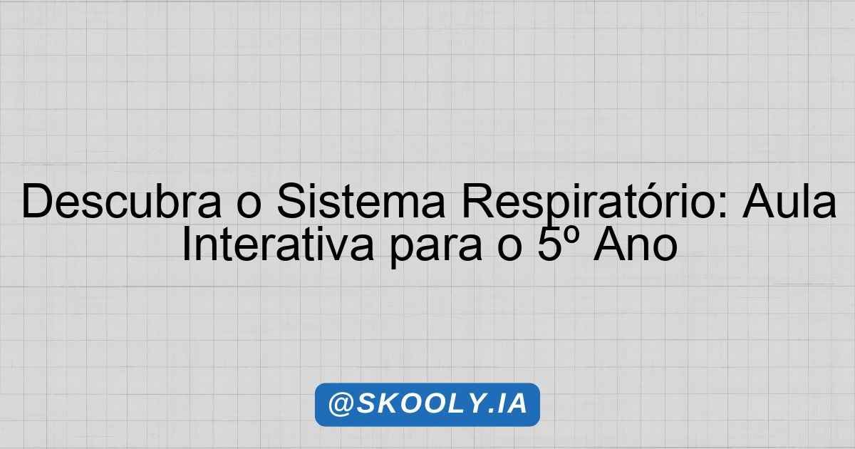 A presente aula tem como tema central o sistema respiratório, um dos sistemas mais fundamentais do corpo humano que fortalece a nossa saúde e bem-estar. Nesta aula de 50 minutos, os alunos do 5º ano do Ensino Fundamental poderão explorar a anatomia, as funções e a importância desse sistema. Utilizaremos métodos interativos que favorecem o aprendizado significativo, despertando a curiosidade e promovendo o aprendizado ativo. Serão propostas perguntas reflexivas e estimulantes que incentivem a participação da turma e a construção de novos conhecimentos.