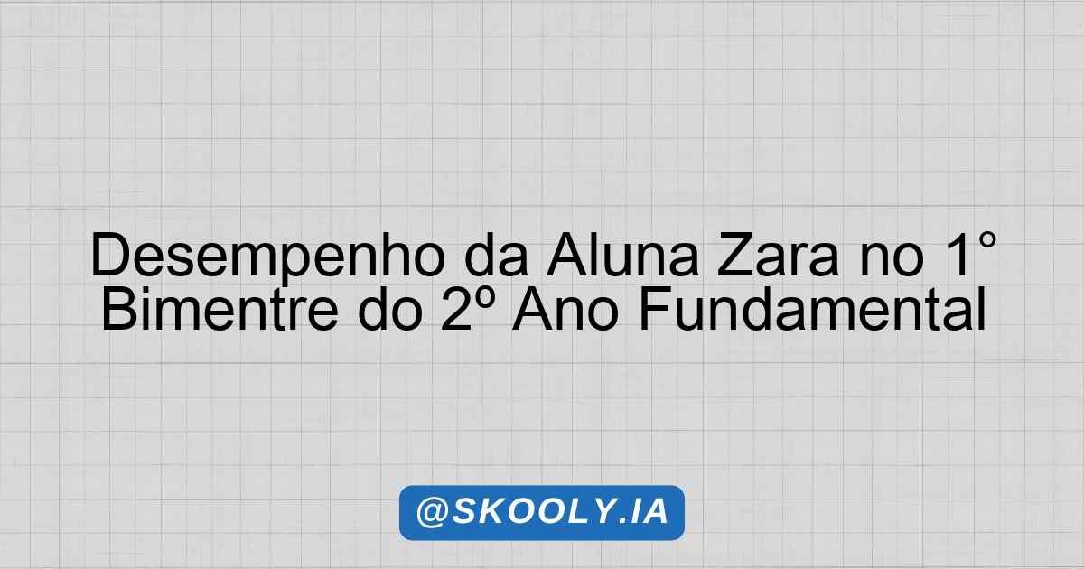 O presente parecer tem como objetivo avaliar o desempenho e o desenvolvimento da aluna Zara Vieira Dias no 1° bimentre do 2º ano do Ensino Fundamental, considerando as disciplinas de Língua Portuguesa, Matemática, Ciências, História e Geografia. É importante destacar que Zara se encontra em um nível de desenvolvimento esperado para a sua faixa etária, o que demonstra um progresso significativo em seu processo de aprendizagem.