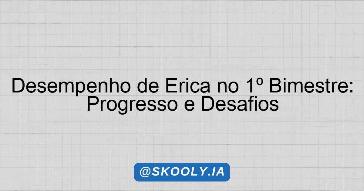 Este parecer tem como objetivo apresentar uma análise do desempenho de Erica ao longo do 1º bimestre do ano letivo. É importante ressaltar que Erica tem demonstrado um progresso significativo em sua jornada de aprendizagem, principalmente no que diz respeito ao acompanhamento das explicações em sala de aula, o que é um passo importante para seu desenvolvimento.