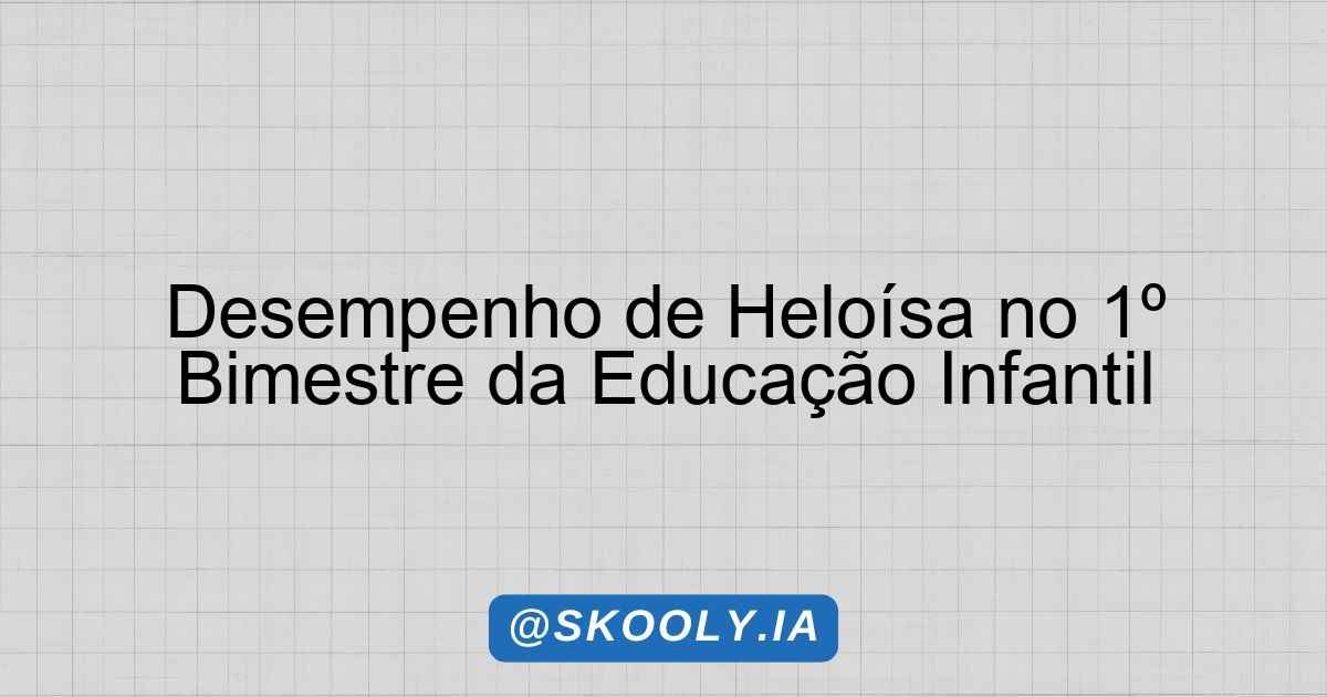 O presente parecer tem como objetivo refletir sobre o desenvolvimento de Heloísa no 1º bimestre, considerando os campos de experiência da Educação Infantil. É com satisfação que destaco o nível de desenvolvimento esperado que Heloísa apresenta, evidenciando seu progresso e dedicação nas atividades propostas.