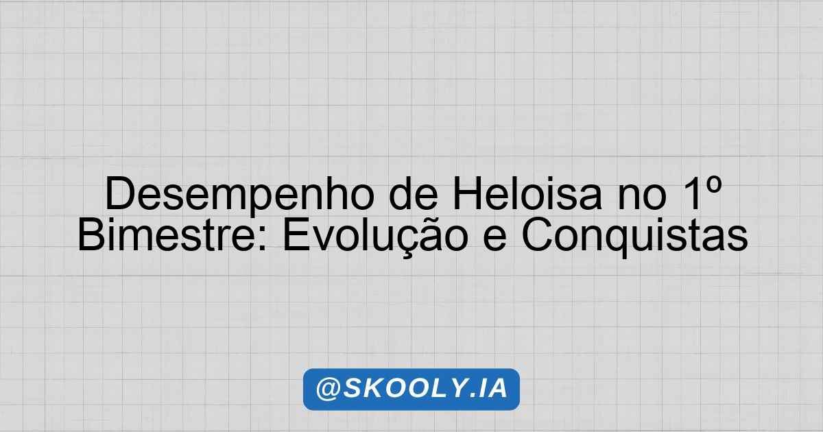 É com grande satisfação que apresento o parecer descritivo da aluna Heloisa, referente ao 1º bimestre do ano letivo. Heloisa vem demonstrando um desenvolvimento esperado em suas habilidades, mostrando-se uma aluna curiosa e esperta, que se destaca pela sua participação ativa nas atividades propostas.
