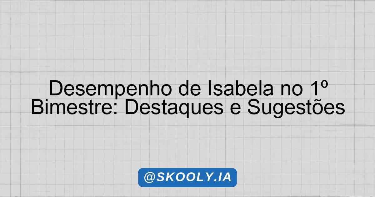 É com grande satisfação que apresento o parecer descritivo referente ao desempenho da aluna Isabela no 1º bimestre do ano letivo. Neste período, Isabela demonstrou um desenvolvimento esperado nas disciplinas de Língua Portuguesa e Matemática, revelando-se uma estudante comprometida e atenta ao seu processo de aprendizagem.