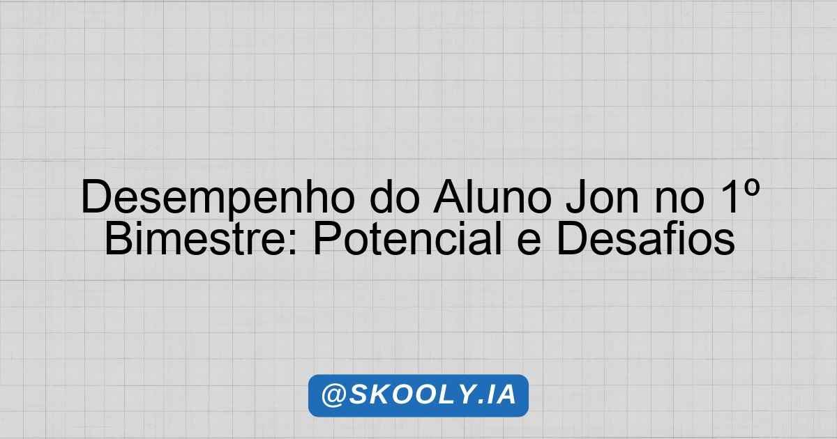 Este parecer descreve o desempenho e o desenvolvimento do aluno Jon durante o 1º bimestre do ano letivo, no contexto do ensino fundamental, anos iniciais. É importante ressaltar que Jon é um aluno que, apesar de suas dificuldades, demonstra um potencial significativo e um desejo de aprender, o que é admirável.