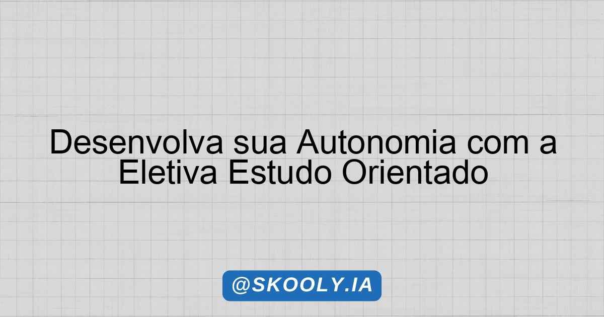 Desenvolva sua Autonomia com a Eletiva Estudo Orientado