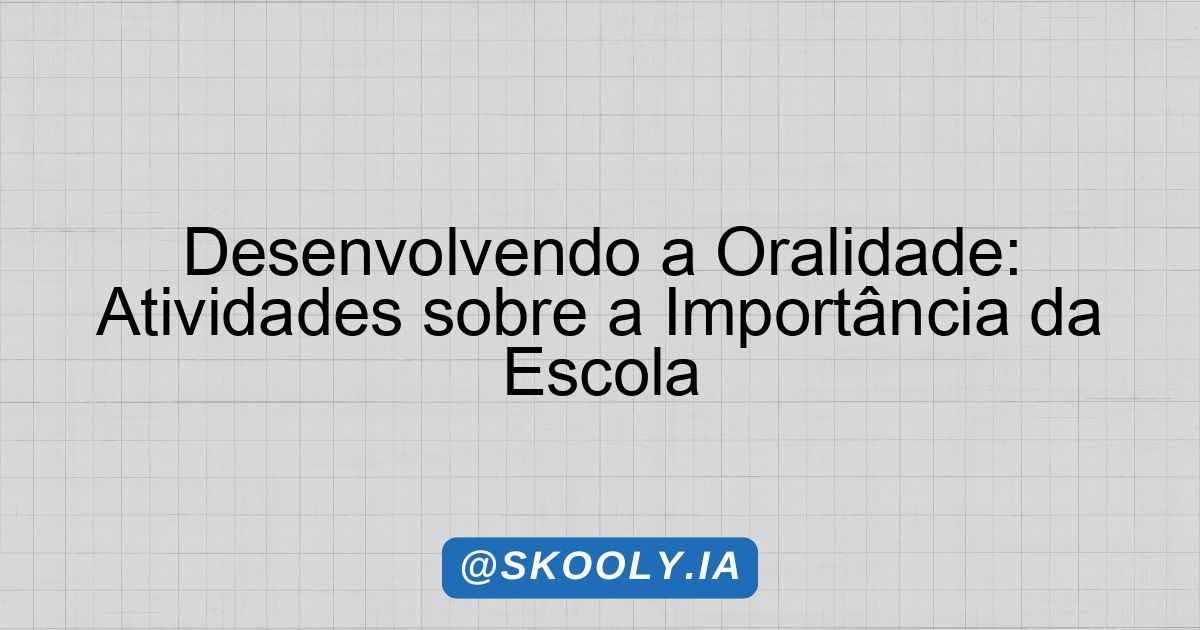 Desenvolvendo a Oralidade: Atividades sobre a Importância da Escola