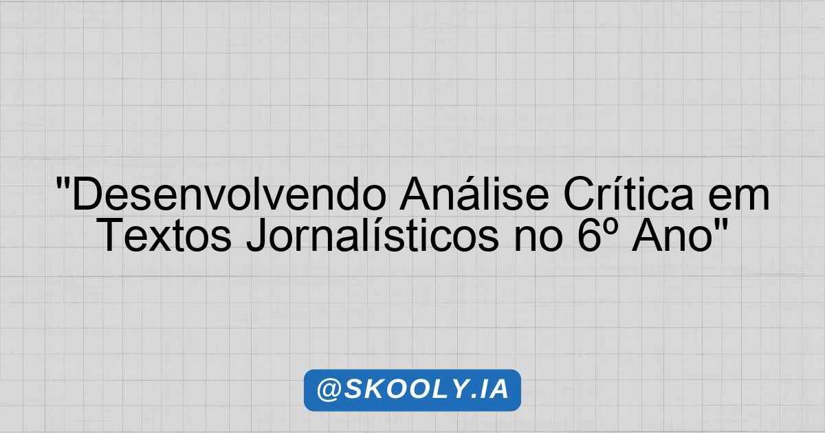 “Desenvolvendo Análise Crítica em Textos Jornalísticos no 6º Ano”